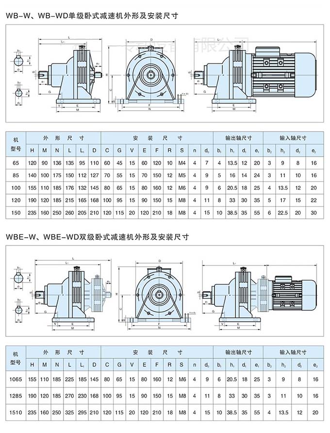WB擺線減速機(jī)的單級和雙級臥式外形及安裝尺寸 - WB微型擺線減速機(jī)